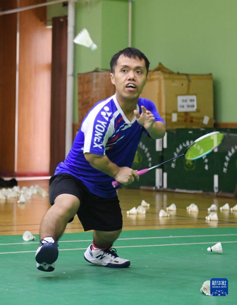 9月12日,中國殘疾人羽毛球隊運動員曾慶濤在訓練中。新華社記者 朱旭東 攝