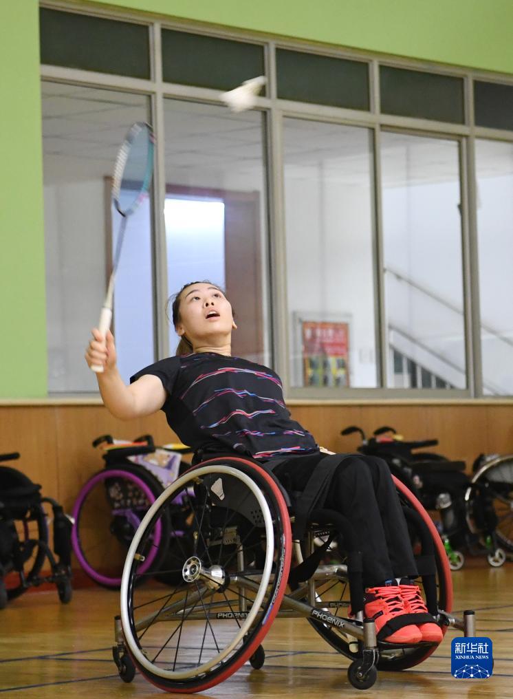 9月12日,中國殘疾人羽毛球隊運動員屈子墨在訓練中。新華社記者 朱旭東 攝