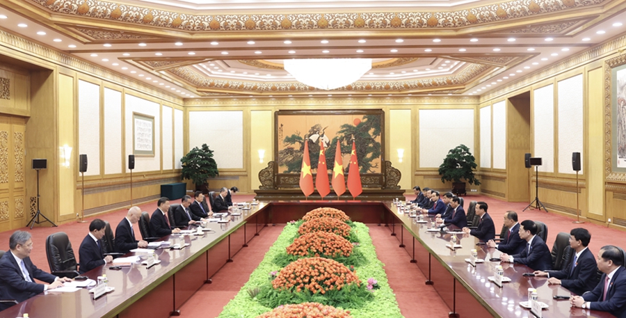 10月20日上午,國(guó)家主席習(xí)近平在北京人民大會(huì)堂會(huì)見來(lái)華出席第三屆“一帶一路”國(guó)際合作高峰論壇的越南國(guó)家主席武文賞。