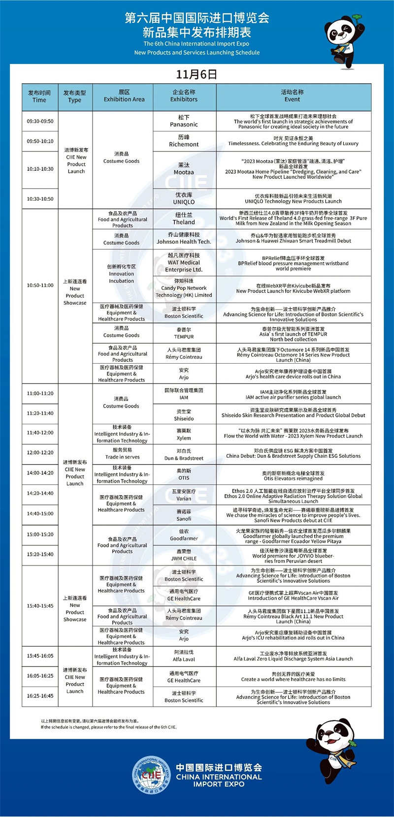 第六屆中國國際進口博覽會新品集中發(fā)布排期表