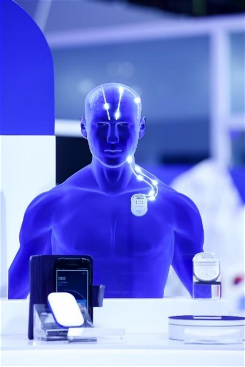 第四屆進博會上的PerceptTM PC 植入式腦深部刺激系統(tǒng),目前已完成首批人腦植入手術(shù)。