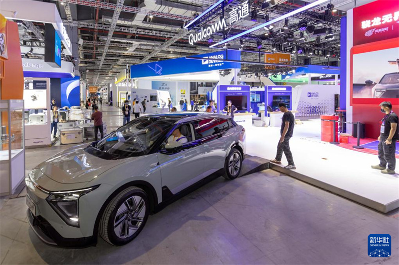 11月2日,一輛搭載高通芯片的智能電動(dòng)汽車準(zhǔn)備駛向高通展位。