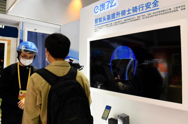 2022年11月8日,互聯(lián)網(wǎng)之光博覽會(huì),媒體記者在體驗(yàn)智能頭盔