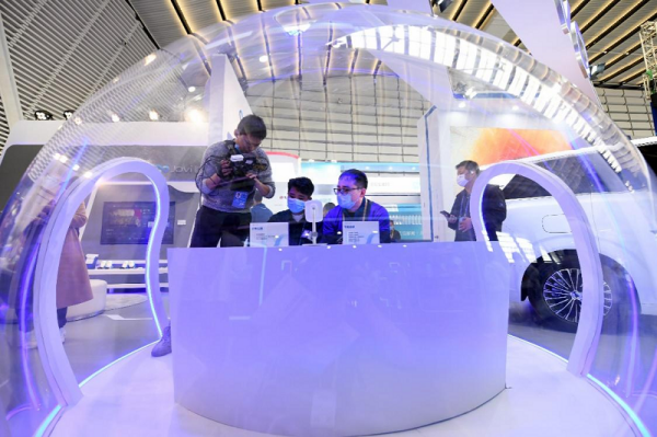 2022年11月8日,互聯(lián)網(wǎng)之光博覽會(huì),媒體記者在拍攝體驗(yàn)全場(chǎng)景開放式手車互聯(lián)組件