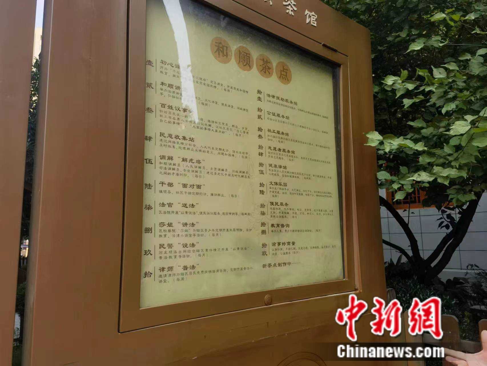 “在基層治理的路途中,法治是最后的防線?!辈桊^負責人說,“和順茶館”為基層法治提供了一個強有力的平臺,聚合公檢法司等法治力量下沉社區(qū),從組建法治隊伍、提供法治“茶點”、設立巡回法庭等多方面讓基層社會治理的執(zhí)行力更強,為居民提供“一站式”化解矛盾糾紛的服務,享受專業(yè)的法律調解、法律咨詢。