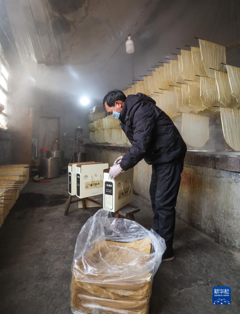 春節(jié)臨近,浙江省諸暨市安華鎮(zhèn)的傳統(tǒng)年貨——豆腐皮迎來銷售旺季。村民加緊制作豆腐皮,供應(yīng)節(jié)日市場。