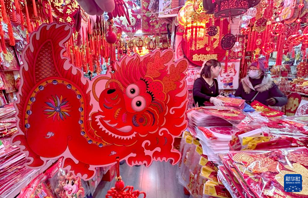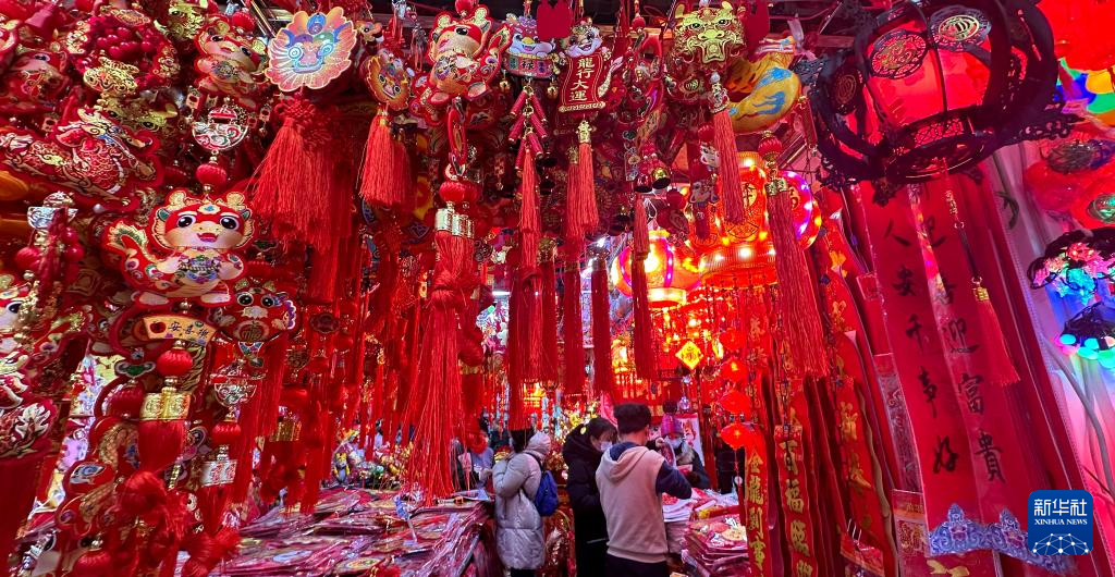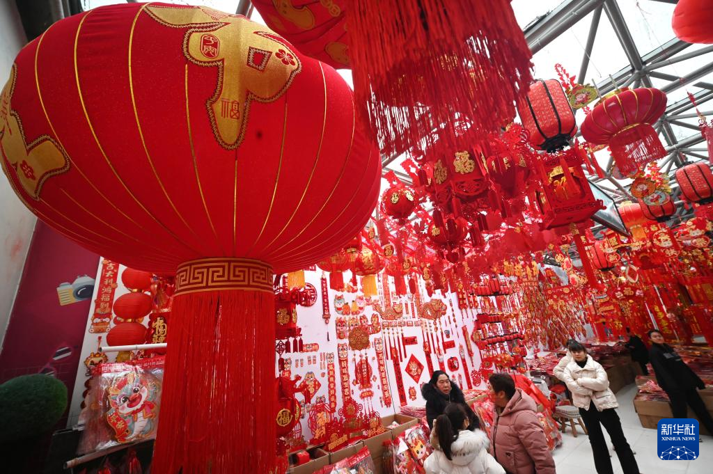 1月20日,人們在河北省石家莊市南三條年貨批發(fā)市場選購春節(jié)飾品。新華社發(fā)(梁子棟攝)