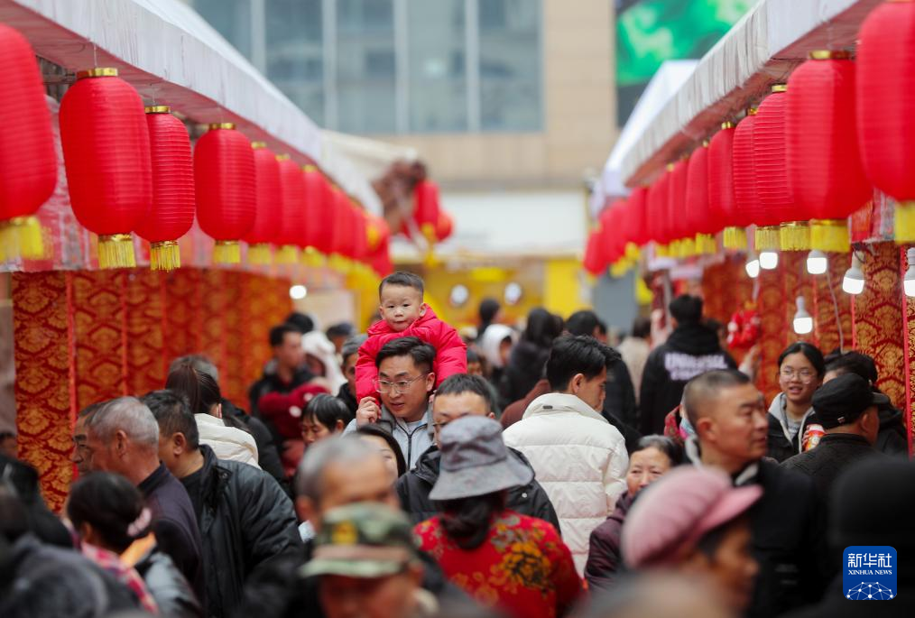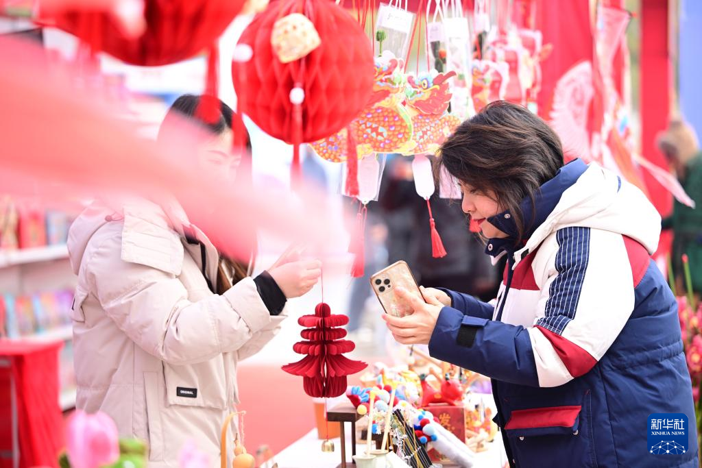 1月20日,人們在湖北省襄陽市樊城區(qū)國際商貿(mào)城挑選春節(jié)飾品。新華社發(fā)(謝勇攝)