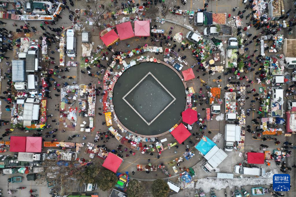 1月20日,人們在山東省濟南市二七新村南路附近的山水大集上選購年貨(無人機照片)。新華社發(fā)(郝鑫城攝)