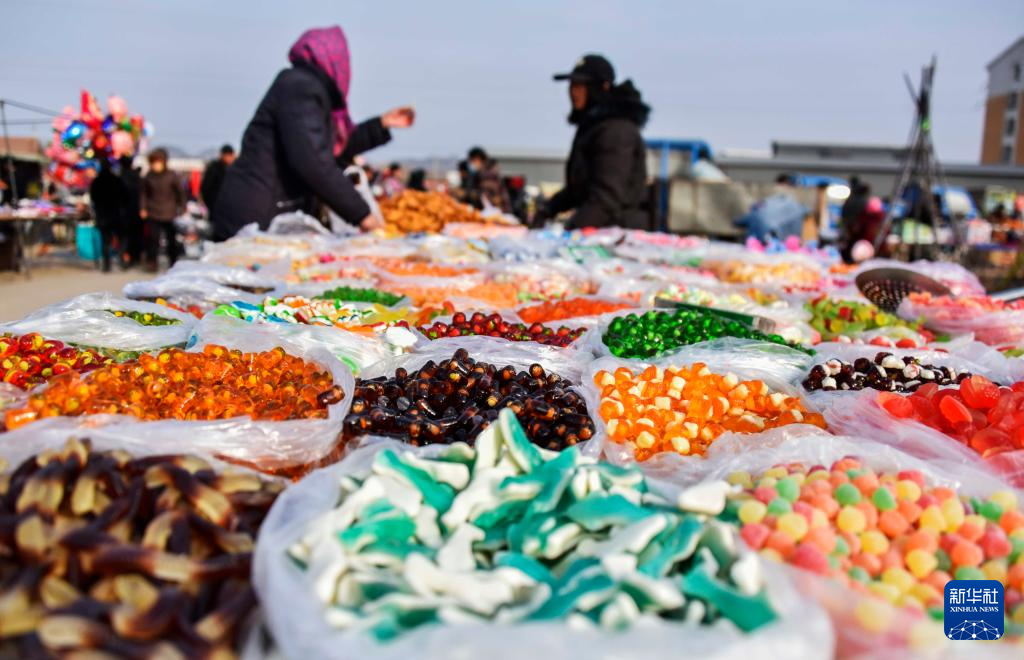 1月19日,人們在河北省遵化市平安城大集上選購糖果。新華社發(fā)(李磊攝)