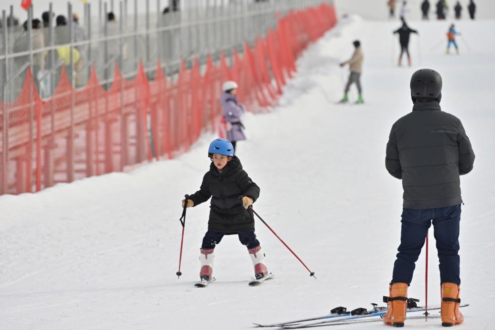 游客在位于羅莊子鎮(zhèn)的薊州溶洞景區(qū)冰雪世界體驗(yàn)滑雪。新華社記者宋為偉 攝