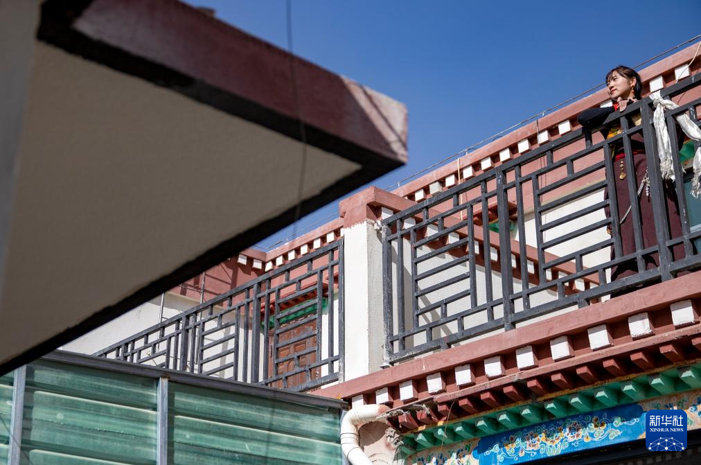 丹增在森布日生態(tài)搬遷安置點的新家陽臺上看風(fēng)景(1月24日攝)。