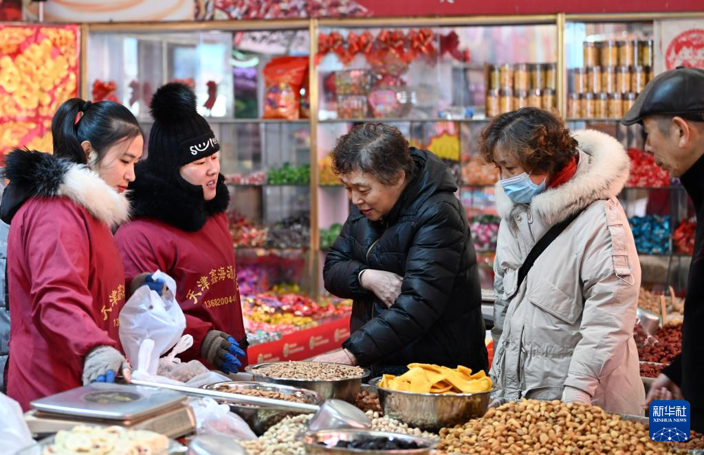 新春佳節(jié)臨近,在天津韓家墅海吉星農(nóng)產(chǎn)品批發(fā)市場舉辦的2024年天津市北辰區(qū)新春年貨節(jié)上,消費者來來往往,熱鬧非凡。