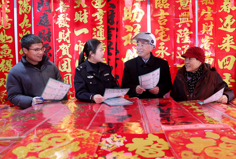 春節(jié)將至,江蘇省宿遷市公安局經(jīng)濟(jì)技術(shù)開發(fā)區(qū)分局組織民警走進(jìn)市場,面對面向群眾宣傳禁毒禁賭、防火防盜、預(yù)防網(wǎng)絡(luò)詐騙等安全知識(shí),切實(shí)提高群眾自我保護(hù)意識(shí)。