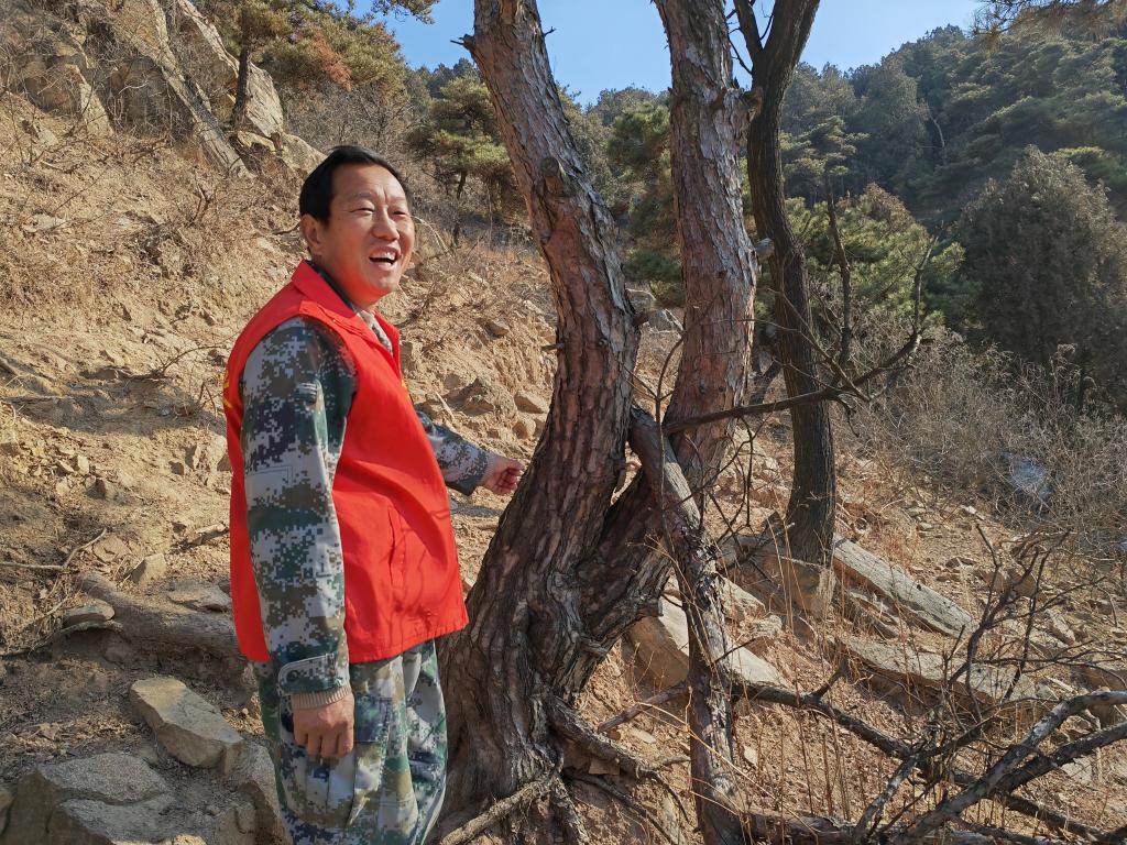 上午9點(diǎn),記者隨尹作國(guó)巡山。側(cè)柏、刺槐、松樹(shù)……指著路上的樹(shù),老尹打開(kāi)了話匣子?!耙徊菀荒荆睦镄枰嗤?,哪里需要修剪,我都知道?!崩弦f(shuō),有兩條巡山線路,單程得2個(gè)多小時(shí)?!爸灰皇怯暄┨欤夹枰藖?lái)巡查一遍。”
