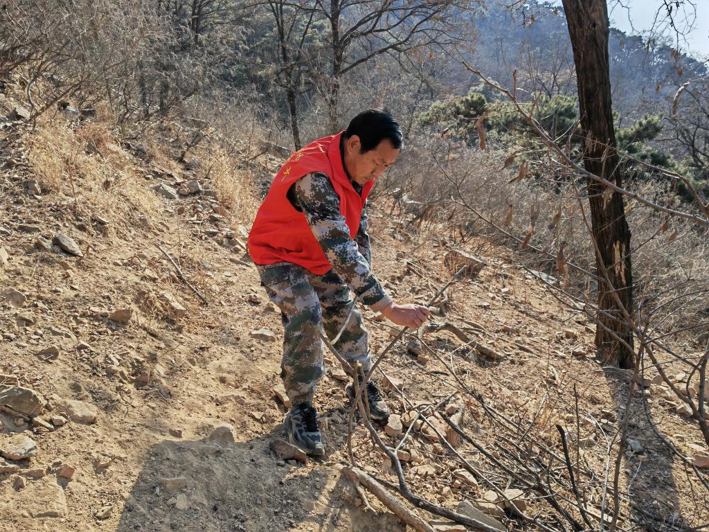 尹作國(guó)在巡山時(shí)清理枯枝。新華社記者楊文 攝