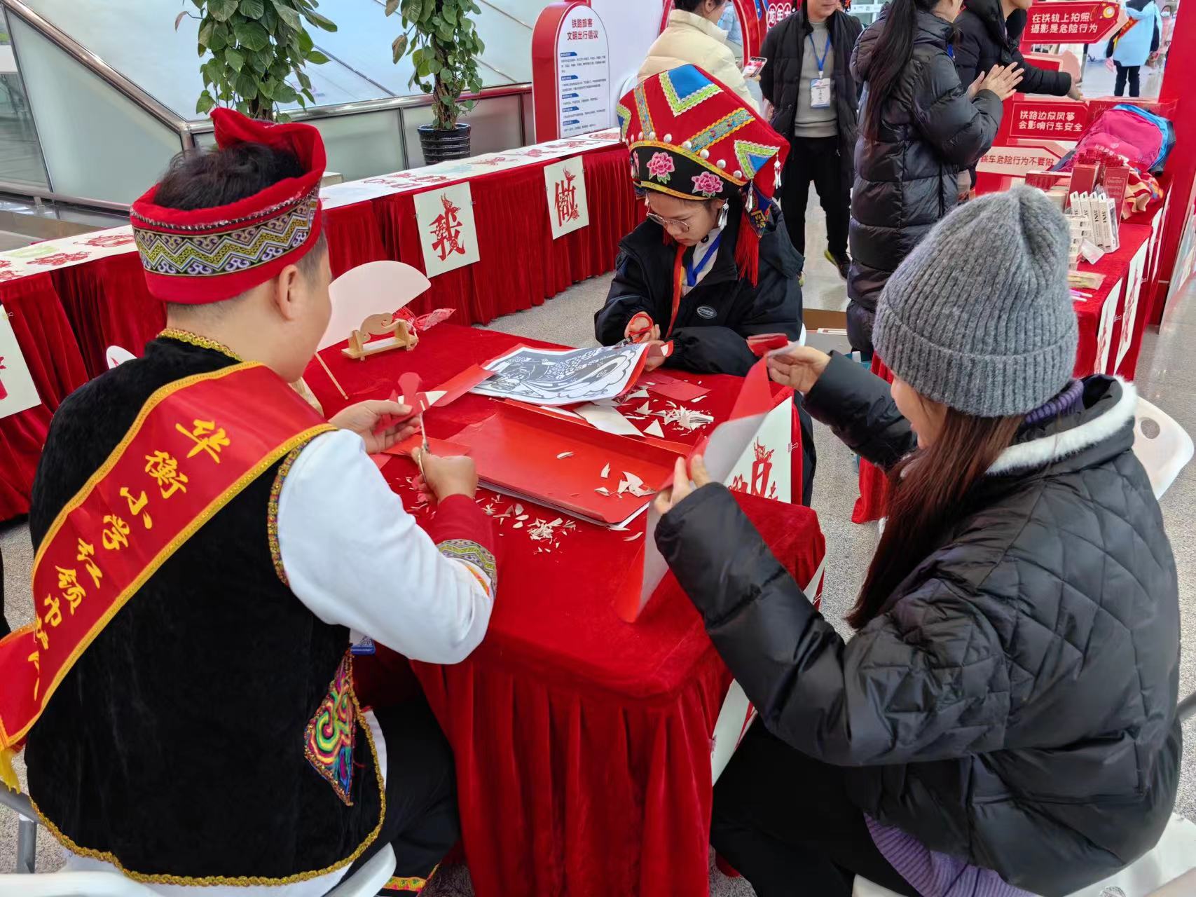 圖為旅客參與非遺剪紙活動。