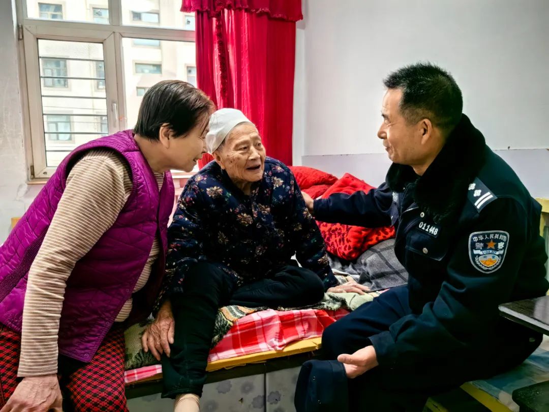 圖為民警王剛來到95歲的魏大娘家中進(jìn)行春節(jié)慰問,并提供便民服務(wù)。