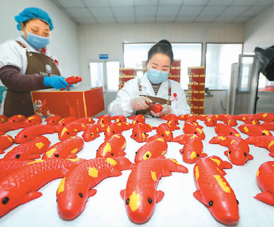 1月30日,山東省青島市即墨區(qū)北安街道王宿莊村花樣饅頭非遺工坊的藝人在制作花饃。梁孝鵬攝(人民圖片)