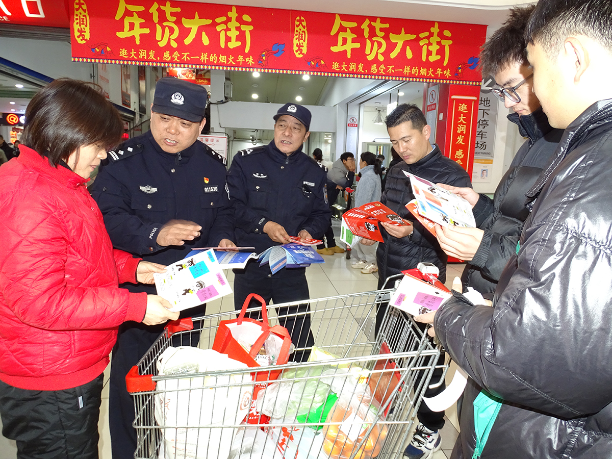 2月3日,安徽省蕪湖市公安局鏡湖分局赭麓派出所民輔警在商場(chǎng)走訪群眾并宣傳安全防范知識(shí)。春節(jié)臨近,商場(chǎng)人頭攢動(dòng)。民輔警向顧客發(fā)放反電詐宣傳材料,講解防范知識(shí),提高大家安全防范意識(shí),守護(hù)好自己的“錢(qián)袋子”。