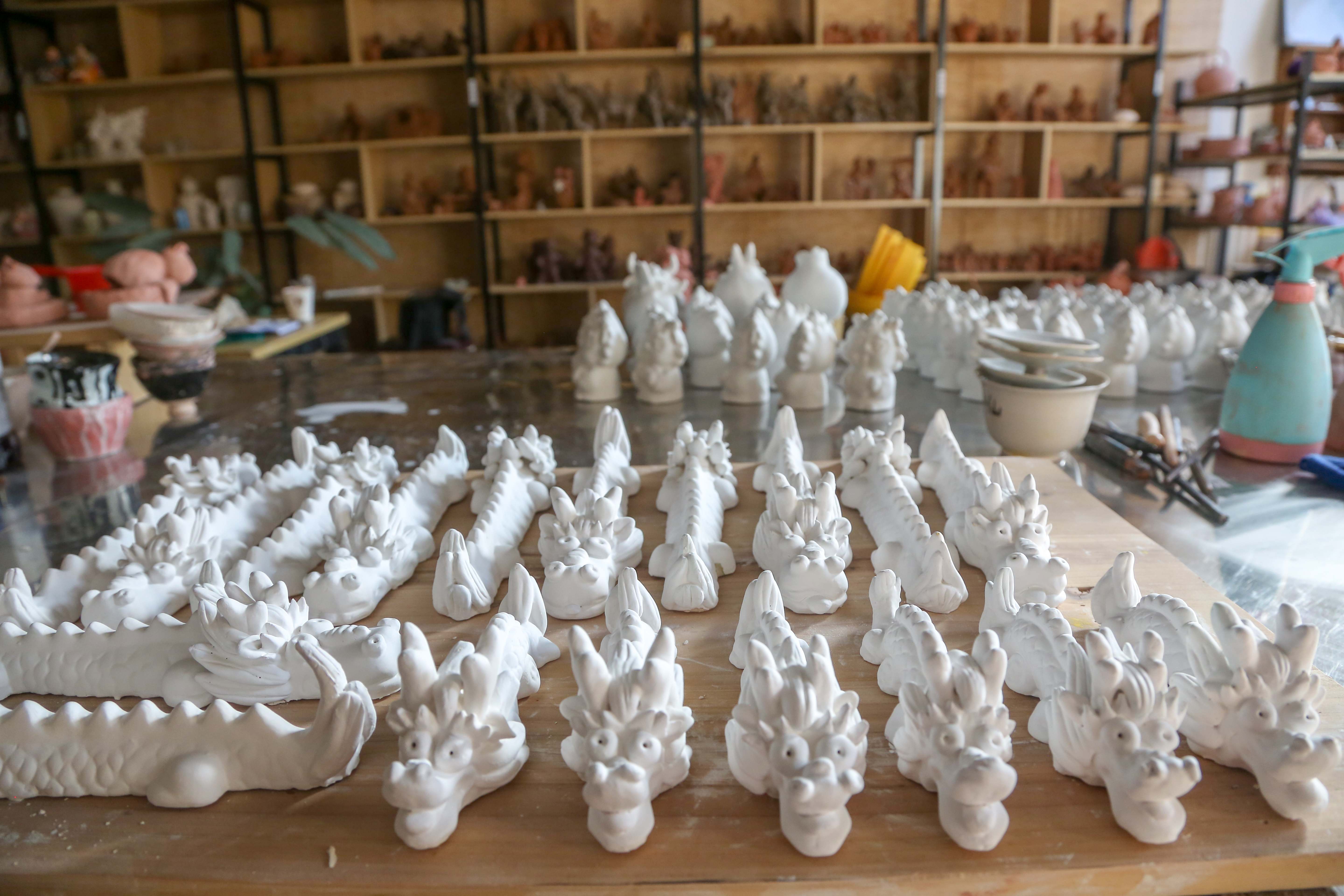 一抔泥土、一把刻刀,經(jīng)巧手捏制、刻畫、修整、彩繪、燒制等多道工序后,一個個活靈活現(xiàn)、寓意吉祥的泥塑作品便制作完成了。