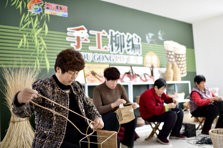 在東營市東營區(qū)龍居鎮(zhèn)“共富工坊”,村民加工柳編產(chǎn)品。新華社記者郭緒雷 攝
