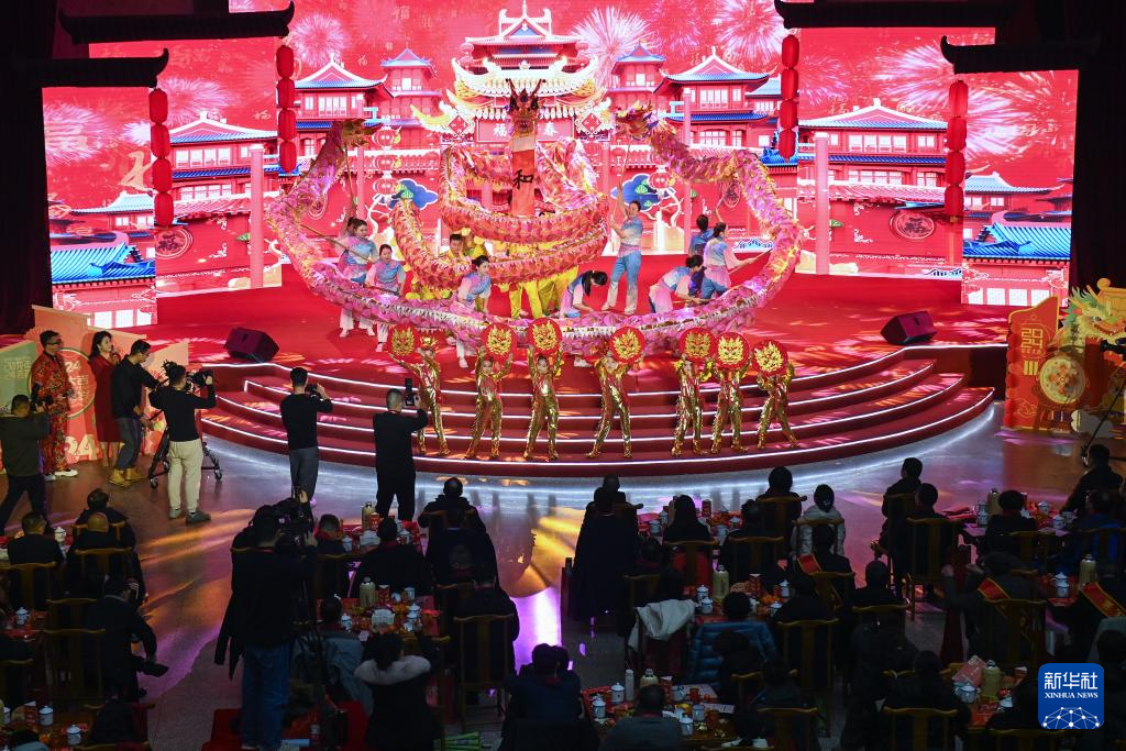 2月4日,來(lái)自湖州長(zhǎng)興縣的農(nóng)民進(jìn)行鴛鴦龍表演。