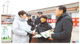 在吆喝、討價(jià)還價(jià)聲中,《法治日報(bào)》記者穿過擁擠的人群,來到一個(gè)特殊攤位——“普法宣傳攤”,擺攤的是薊州區(qū)司法局孫各莊司法所、漁山強(qiáng)制隔離戒毒所以及天津市公安局薊州分局孫各莊派出所的工作人員。