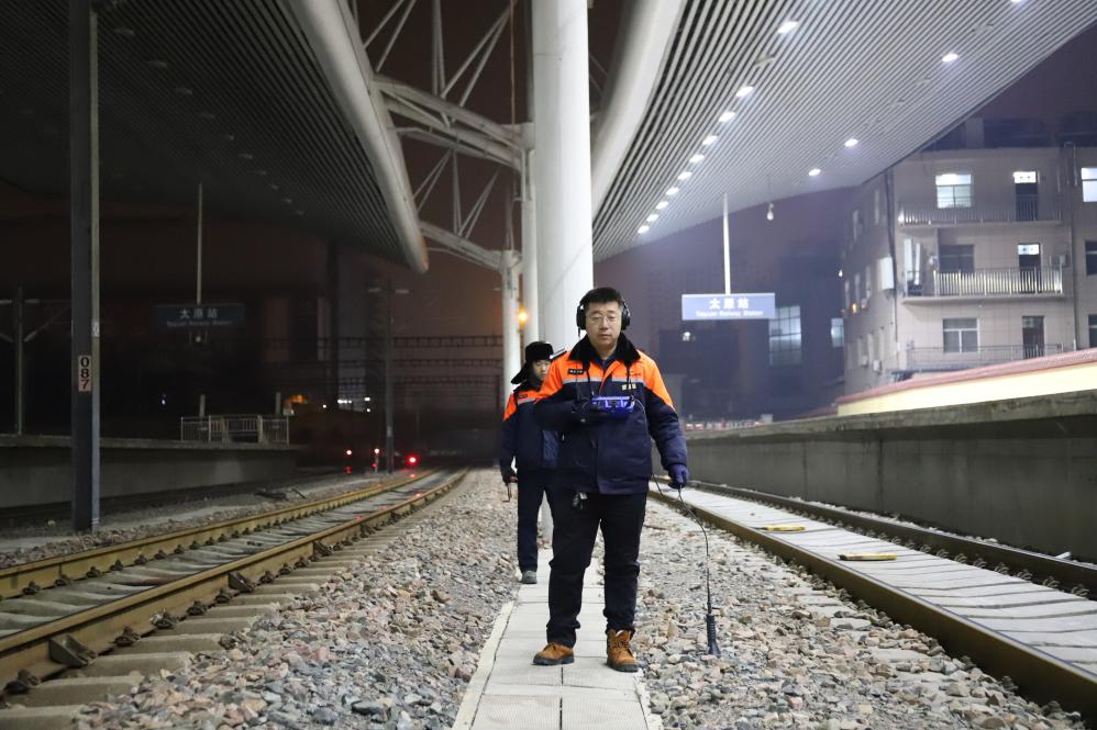 2月7日0點(diǎn),頂著呼嘯的寒風(fēng),杜彪和工友們拿著工具包,在太原站綜合樓前集合,準(zhǔn)備開展天窗作業(yè)。