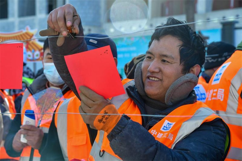 中建三局濟(jì)南市醫(yī)療康養(yǎng)綜合服務(wù)基地建設(shè)項目部舉辦“情系農(nóng)民工 溫暖迎新春”活動。新華社記者朱崢 攝