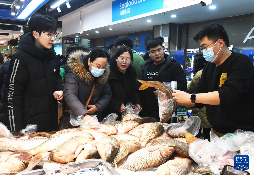 2月7日,顧客在河北石家莊新樂市一家超市選購(gòu)海鮮產(chǎn)品。