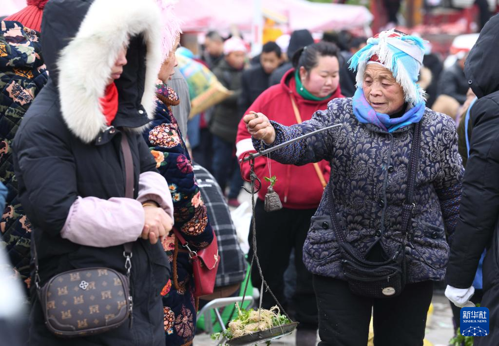 2月7日,人們?cè)谫F州省黔東南苗族侗族自治州黃平縣新州鎮(zhèn)年集上選購(gòu)年貨。