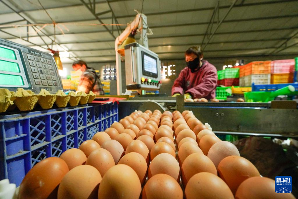 2月7日,河北省遵化市東新莊鎮(zhèn)一家蛋雞養(yǎng)殖場(chǎng)的工人在分揀雞蛋準(zhǔn)備外運(yùn)。