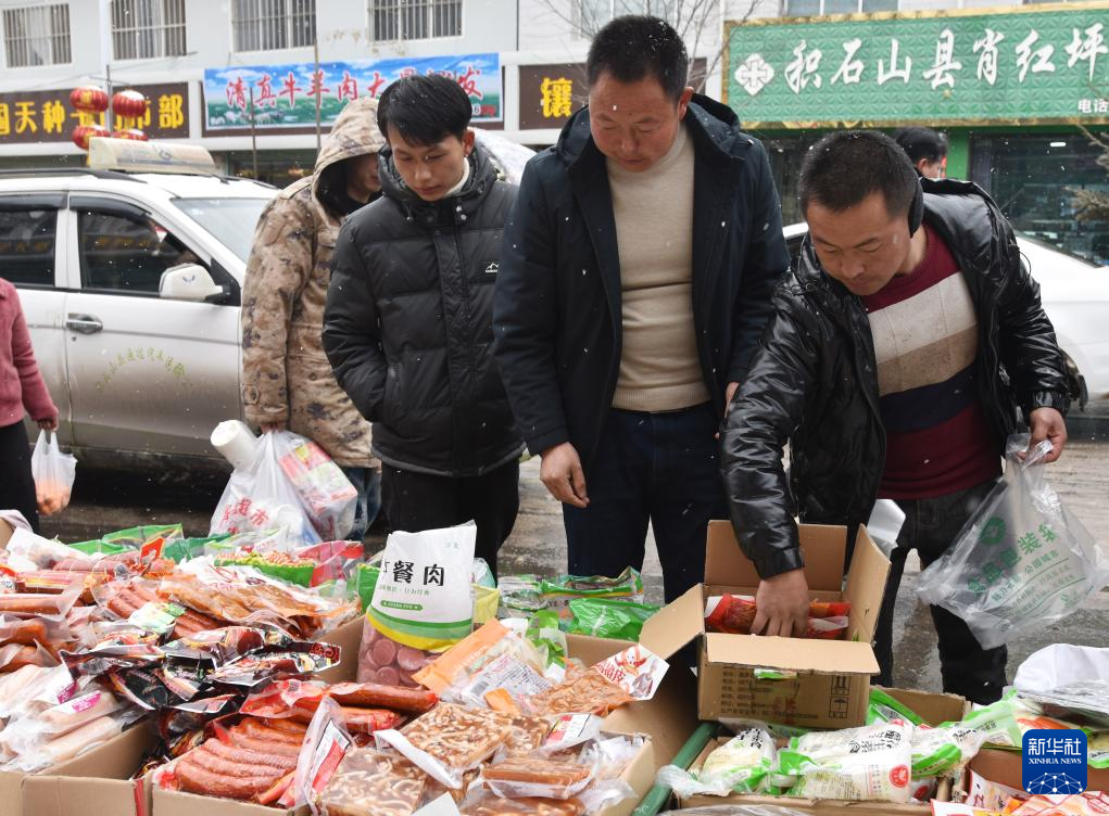 2月6日,人們?cè)诟拭C省臨夏州積石山縣石塬鎮(zhèn)肖紅坪村年俗集市選購(gòu)年貨。