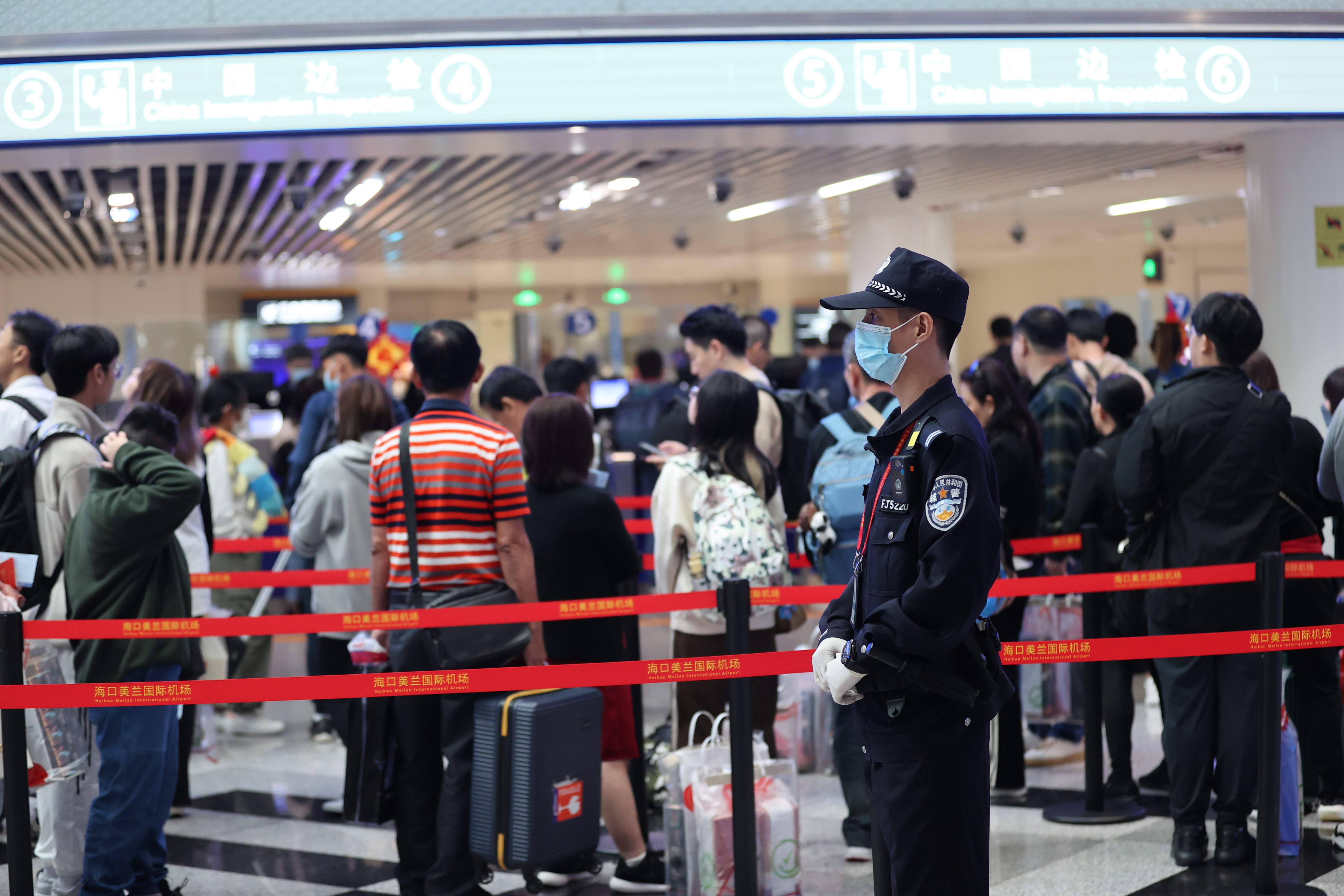 2月10日,正值大年初一。上午10時許,兩架從新加坡入境海南海口的航班滿載著286名旅客相繼飛抵??诿捞m國際機(jī)場,美蘭出入境邊防檢查站執(zhí)勤四隊的執(zhí)勤民警又開始忙碌起來。