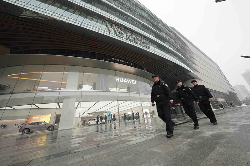 圖為湖北省武漢市公安局武昌區(qū)分局梅苑派出所民警正在武商夢時代廣場外圍開展步巡。孫遜/攝
