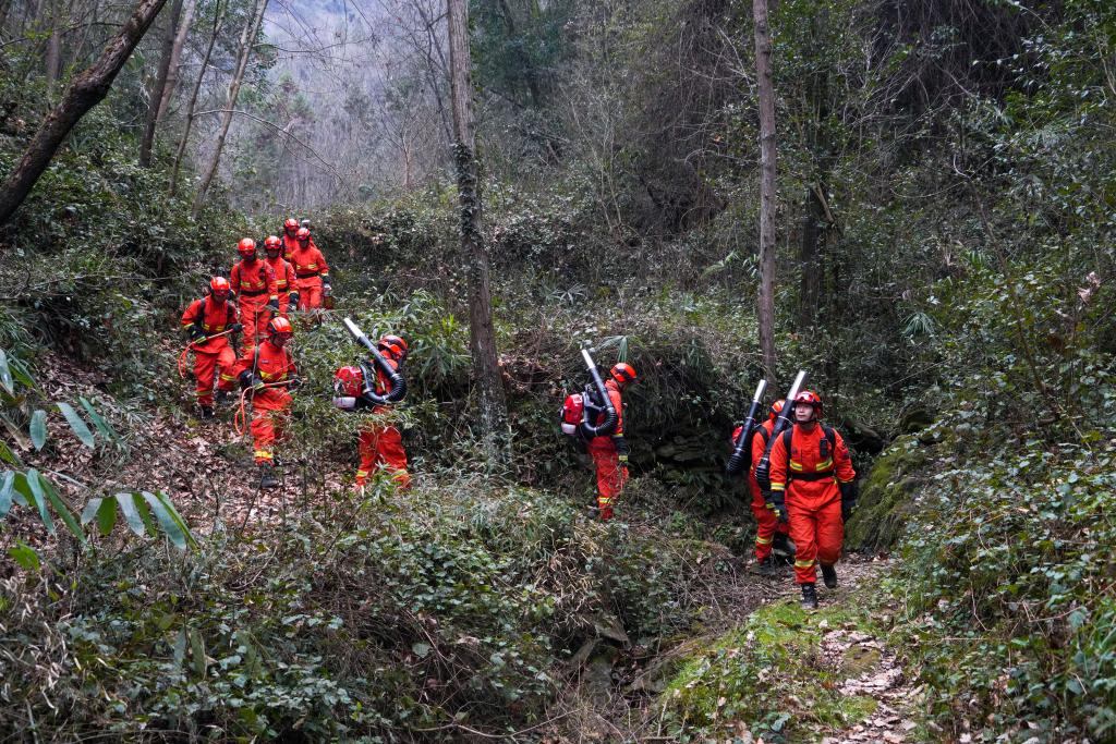 “山林滅火更要講究戰(zhàn)術(shù)戰(zhàn)法,其中有一條就是‘以火攻火’,即在山火前進的方向提前燒出一片白地,阻止火勢蔓延,或使用反向火與來火對沖,撲滅火情?!卑部雕v防分隊負(fù)責(zé)人吳瑤告訴記者。