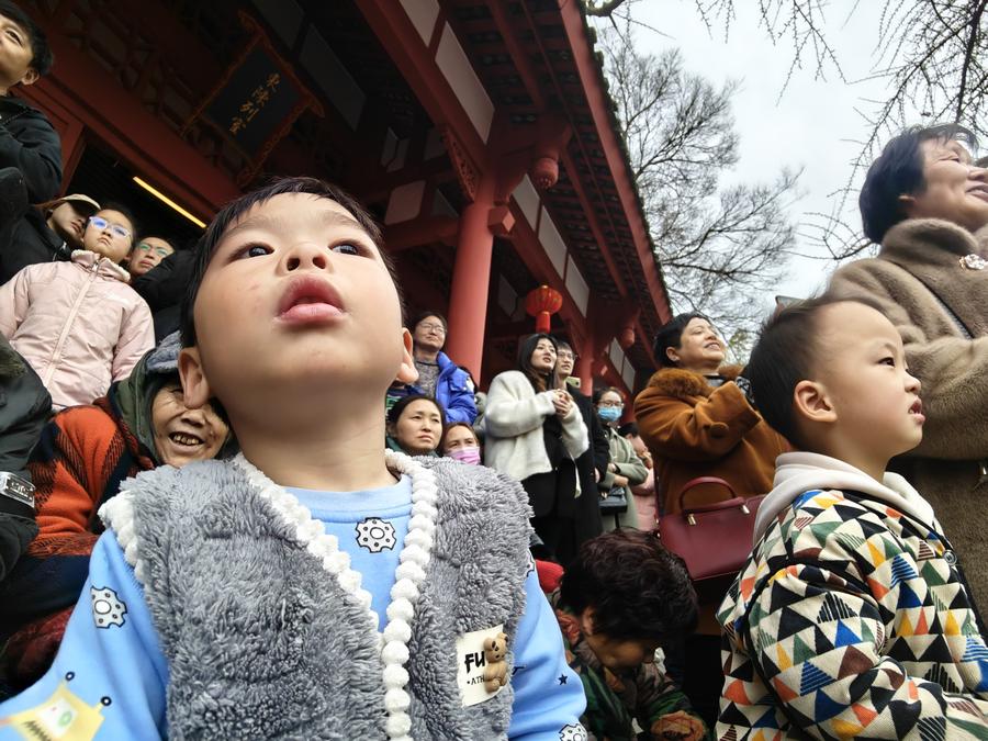 2月14日,傳統(tǒng)地方戲讓老少觀眾看得入神又開心。新華社記者謝佼 攝