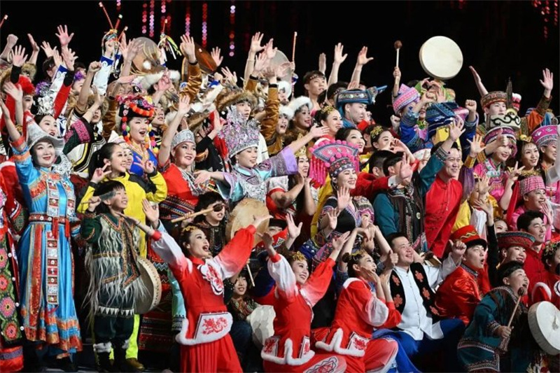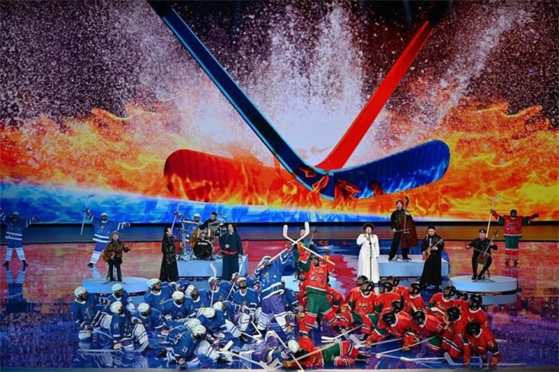文體展演的主題為“燃情冰雪?筑夢北疆”,包括序篇《共同的家園》,主篇章《山河共錦繡》《冰雪共相約》《攜手共奮進(jìn)》,尾聲《共同的未來》。展演將中國風(fēng)范、民族特色、北疆韻味、運(yùn)動(dòng)活力通過科技手段創(chuàng)意呈現(xiàn),展現(xiàn)了草原文化、冰雪文化和民族文化的多彩魅力。