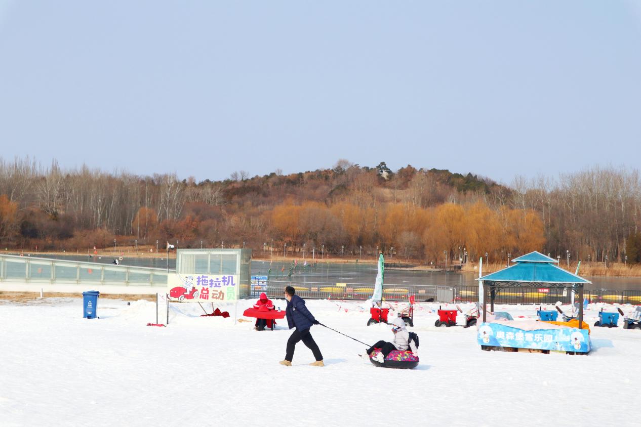 趣味性十足、浪漫刺激的冰雪運(yùn)動(dòng)項(xiàng)目吸引眾多家長(zhǎng)帶孩子過(guò)來(lái)打卡。李先生帶著妻子和4歲的兒子從深圳來(lái)到北京過(guò)年,首站便是奧森的冰雪嘉年華,孩子拉著雪圈在雪地上飛快地奔跑,小臉凍得通紅也要繼續(xù)玩兒?!坝螛?lè)場(chǎng)原本對(duì)小朋友就有很大吸引力,再和冰雪結(jié)合起來(lái),就更加趣味十足,孩子初次體驗(yàn)滑雪特別興奮?!崩钕壬f(shuō)。