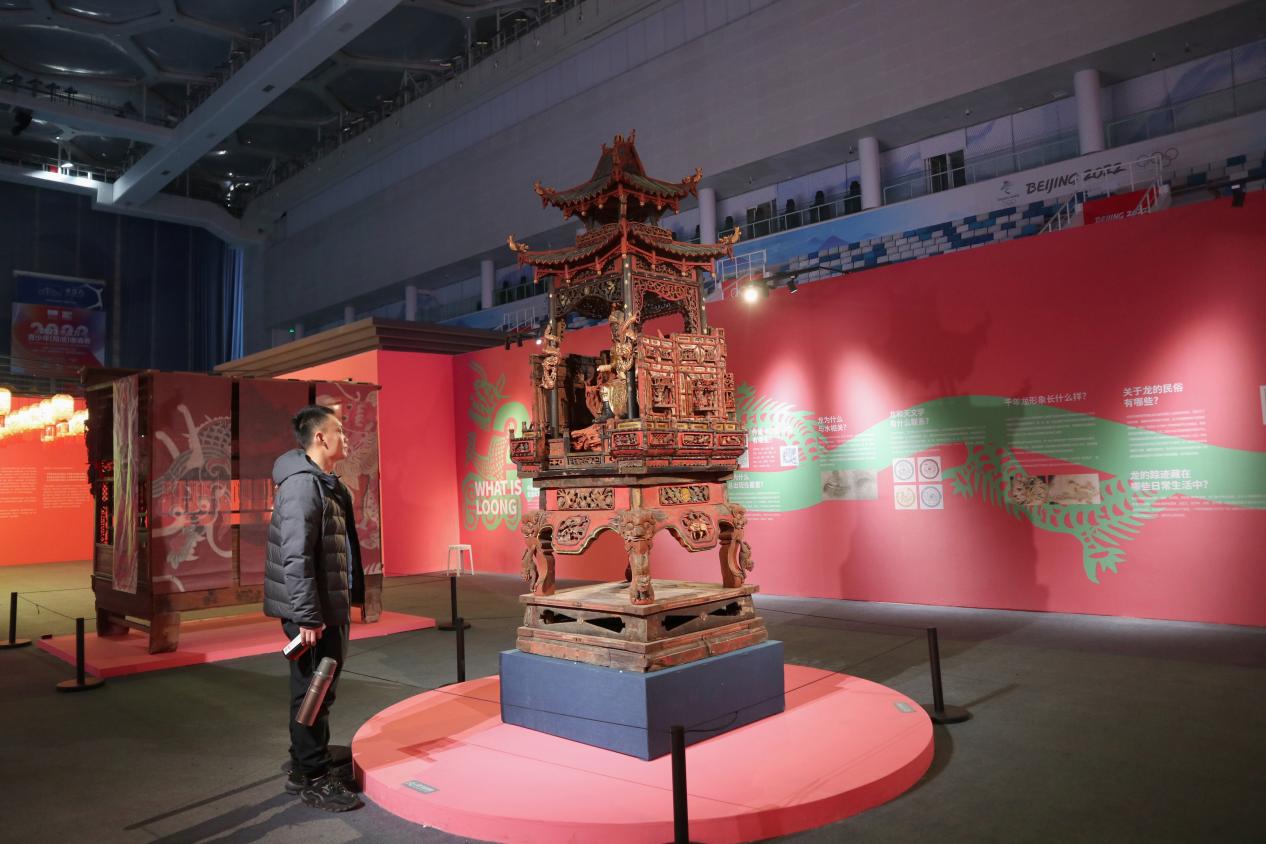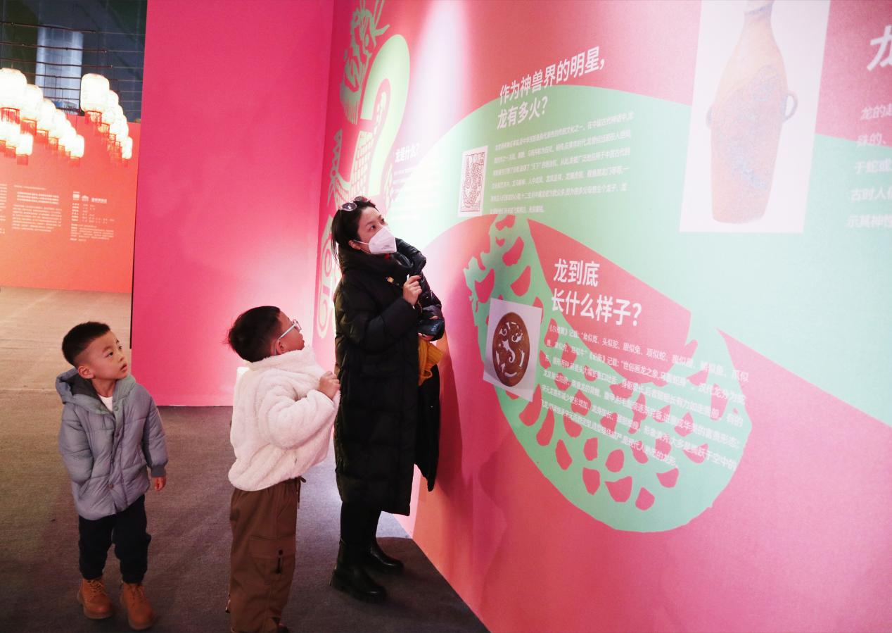 “此次呈現(xiàn)的龍與以往看到的莊重威嚴(yán)的龍不太一樣,從服飾到杯盞再到小小的裝飾品,龍的形象好像融入了百姓的日常生活,變得更加和藹可親。”從江蘇帶家人來(lái)北京過(guò)年的陳女士深有感觸。