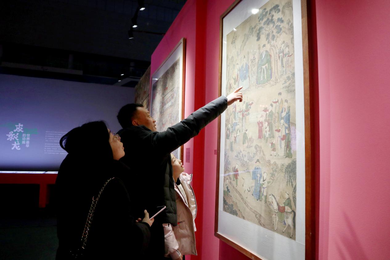 圖為游客在“喜樂(lè)過(guò)龍年”展覽中觀賞《祝壽圖》。