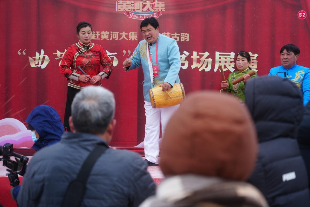 曲藝人在胡集書(shū)會(huì)現(xiàn)場(chǎng)表演。新華社記者高天 攝