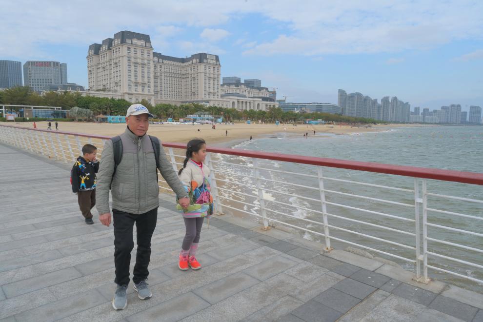 1月23日,一些游客在濱海浪漫線趕海。新華社記者林善傳 攝