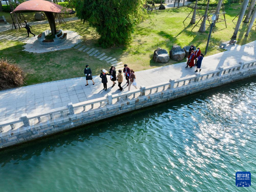 1月24日,廈門市民在筼筜湖邊散步休閑(無人機照片)。新華社記者 姜克紅 攝