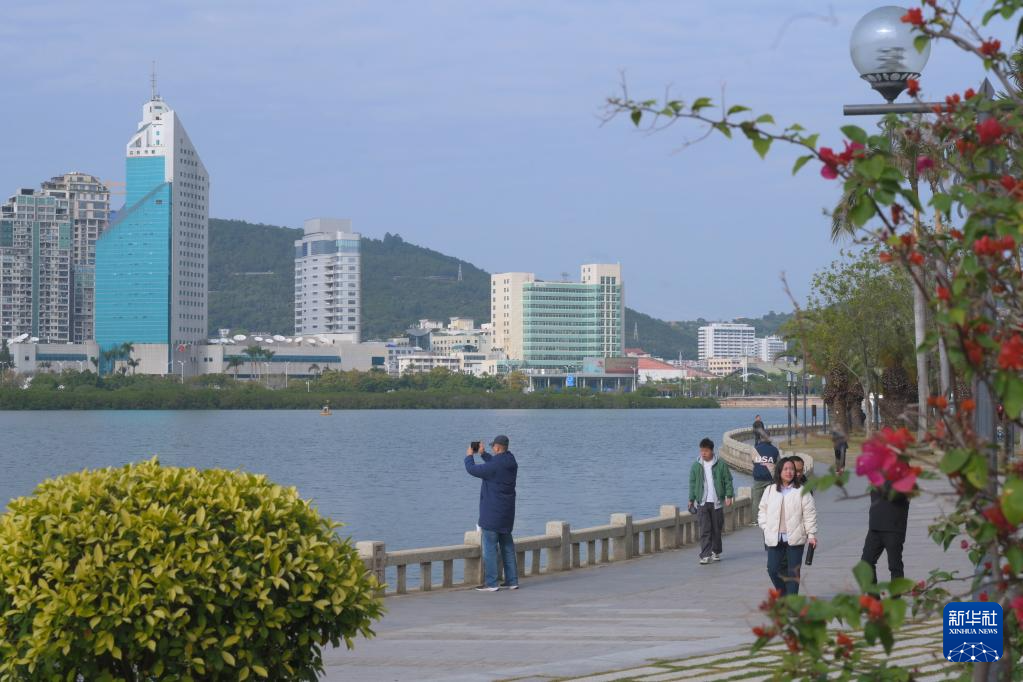 1月24日,市民在廈門筼筜湖畔休閑漫步。新華社記者 林善傳 攝