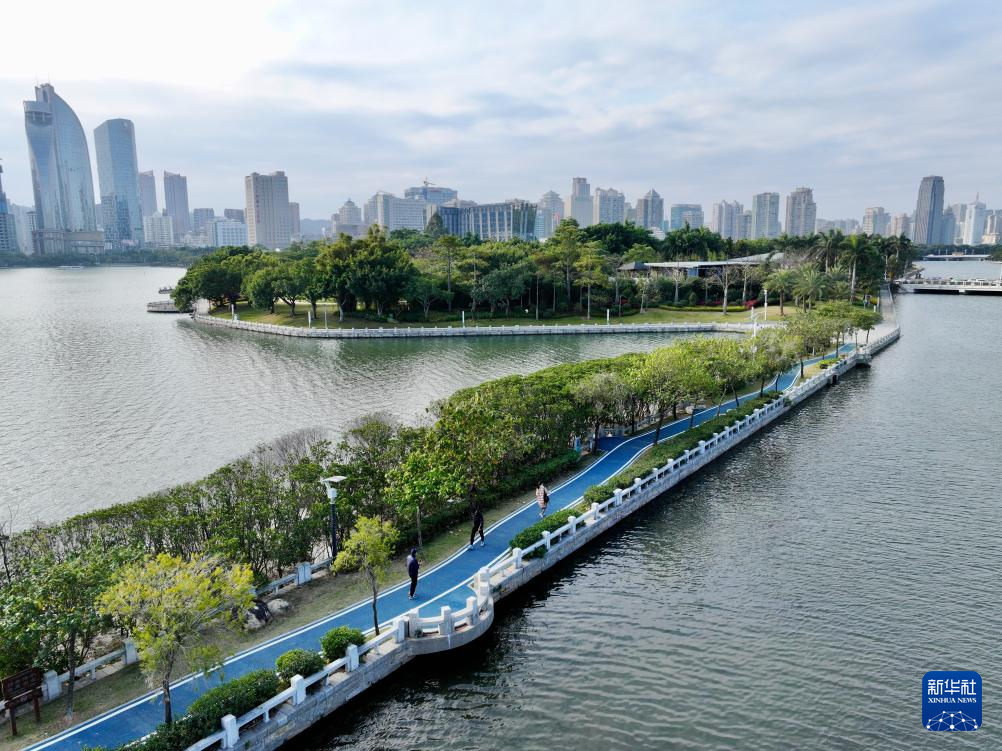 這是1月24日拍攝的廈門筼筜湖休閑步道(無人機照片)。新華社記者 姜克紅 攝