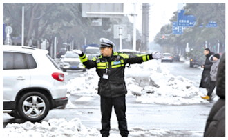 從早上7點至晚上11點,忙碌在風雪保暢的交通管理一線,他嘶啞的嗓音、疲憊的眼神、有力的手勢、奔跑的腳步、溫暖的交談……