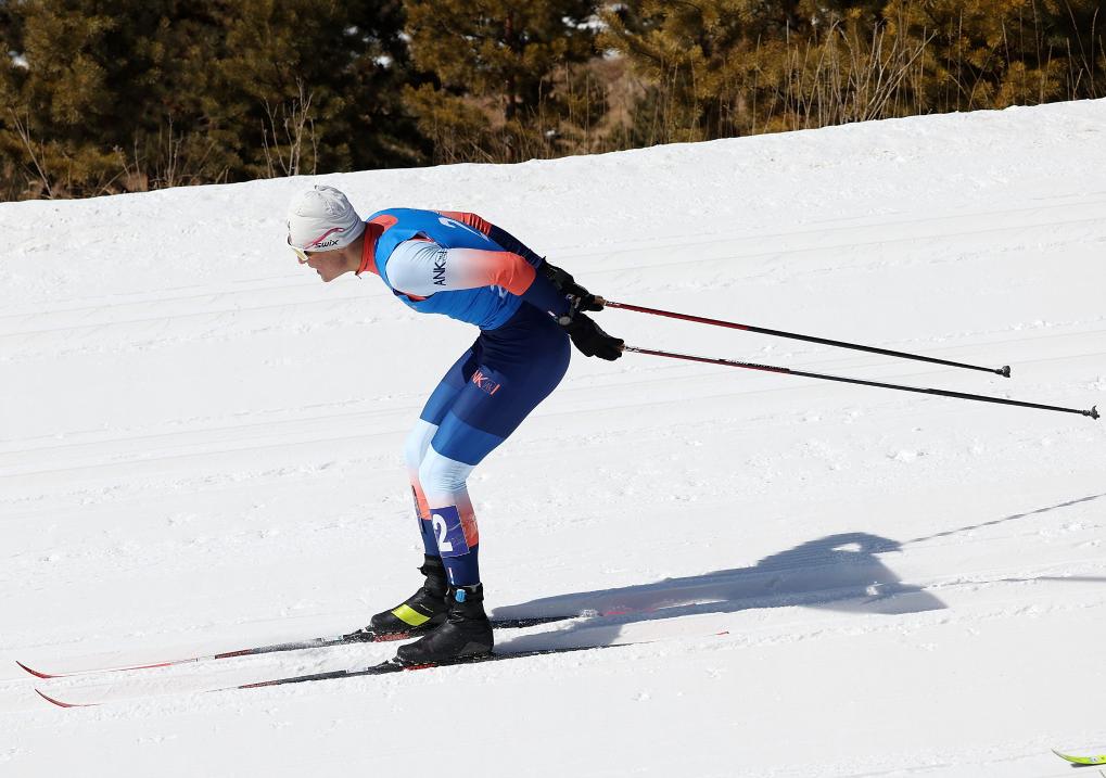 2月25日,新疆隊選手賽木哈爾·賽力克在比賽中沖刺。新華社記者 張晨霖 攝