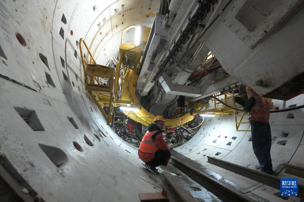 2月24日,施工人員在福州地鐵2號線東延線一期工程下德站“海峽號”盾構(gòu)機現(xiàn)場作業(yè)。